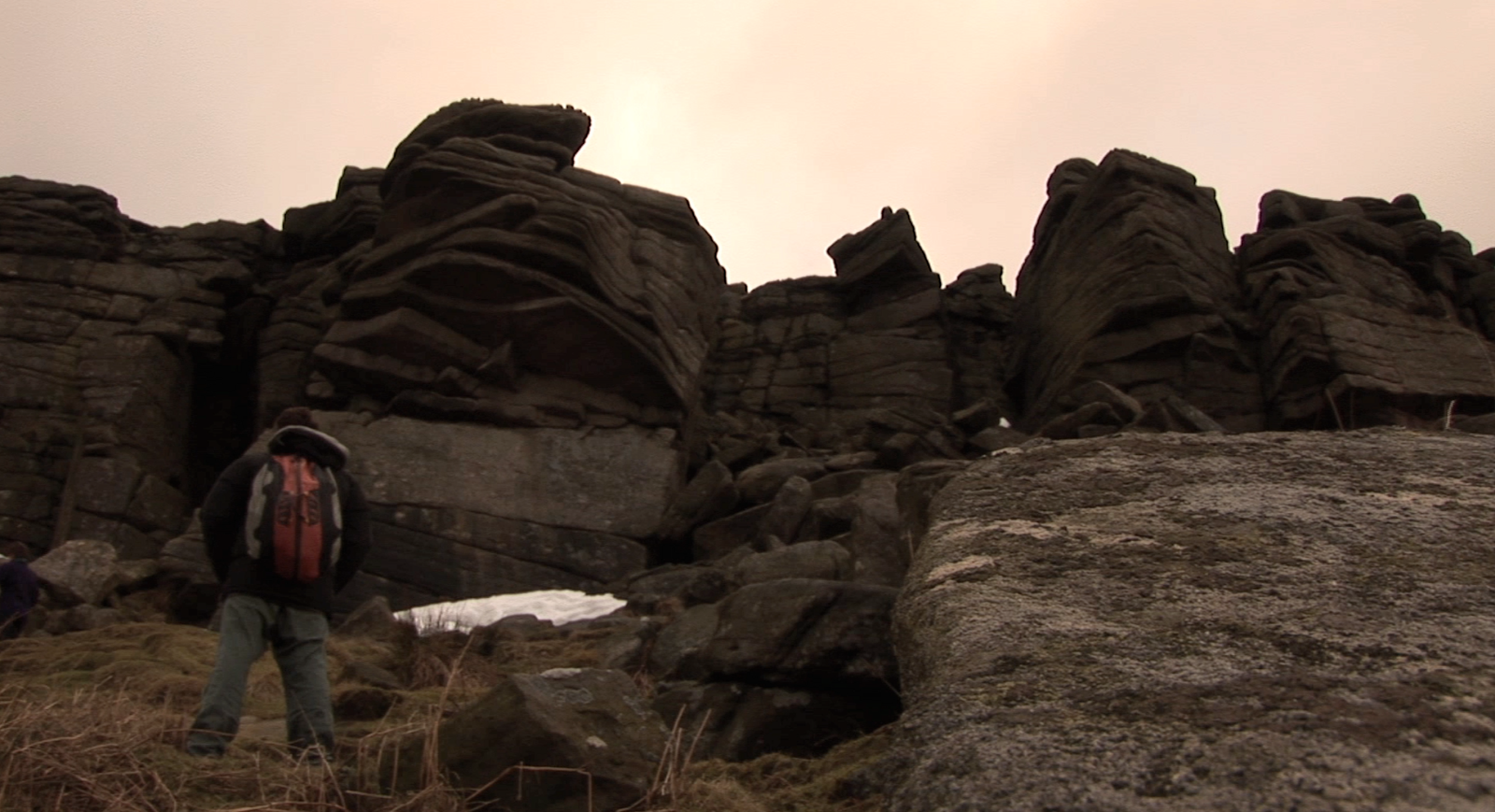 • If the main subject talks about something, then show the audience what they're talking about... for example in our edit, the main character states how Stanage Edge is one of the most famous climbing ares in Britain, so we cut to a shot of him stood looking up at Stanage Edge. (shown below)
